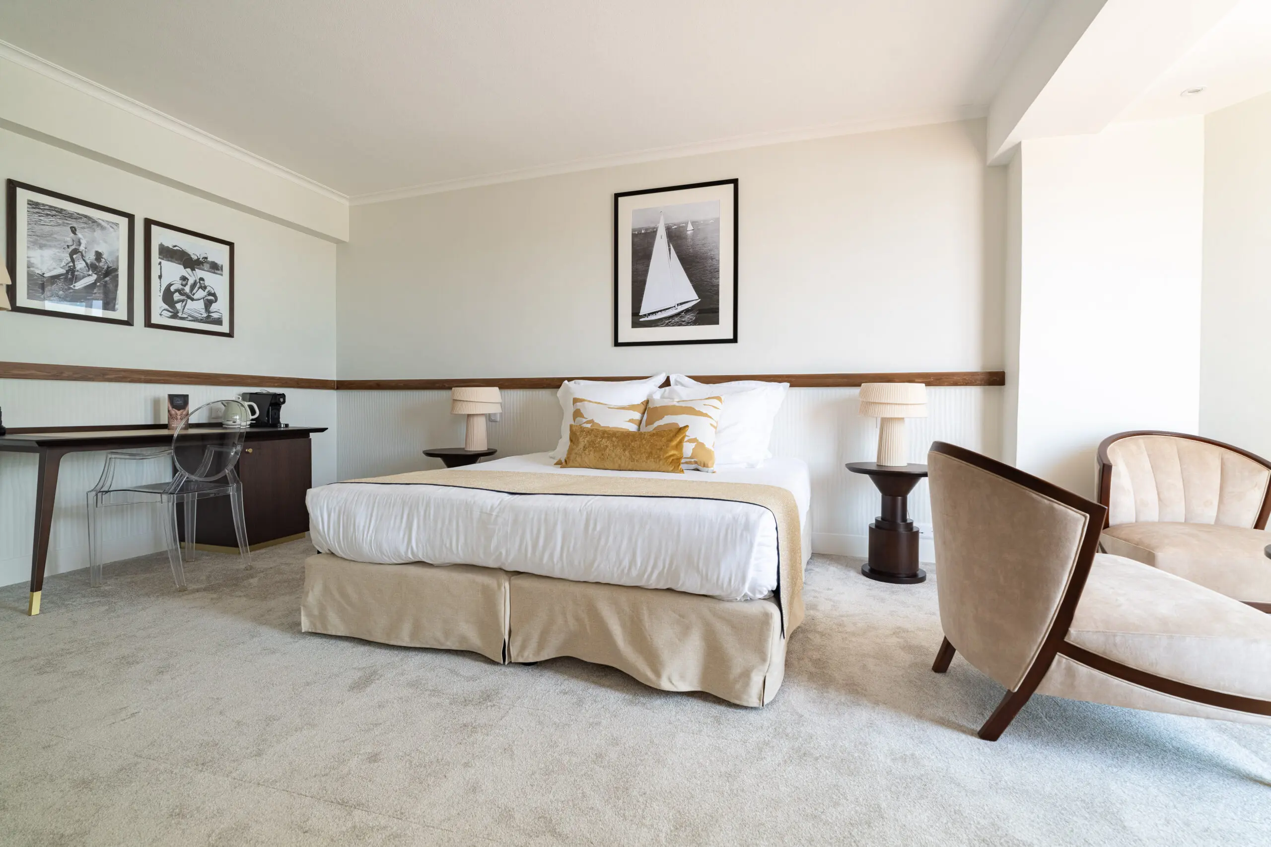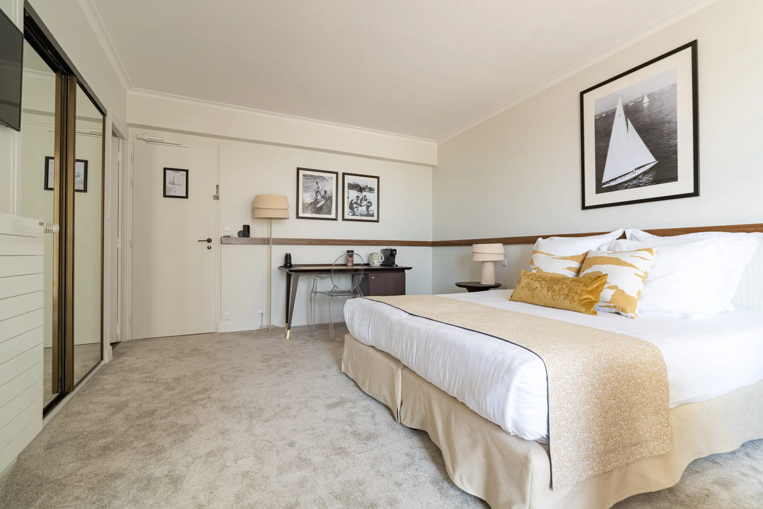 Spacieuse et moderne, cette chambre est un véritable écrin de luxe. Sa terrasse privée avec vue sur la mer en fait un choix privilégié pour un séjour mémorable. Elle peut accueillir une ou deux personnes et offre le choix entre un grand lit ou deux lits simples. Certaines chambres de cette catégorie sont communicantes, idéales pour des séjours en famille ou entre amis.